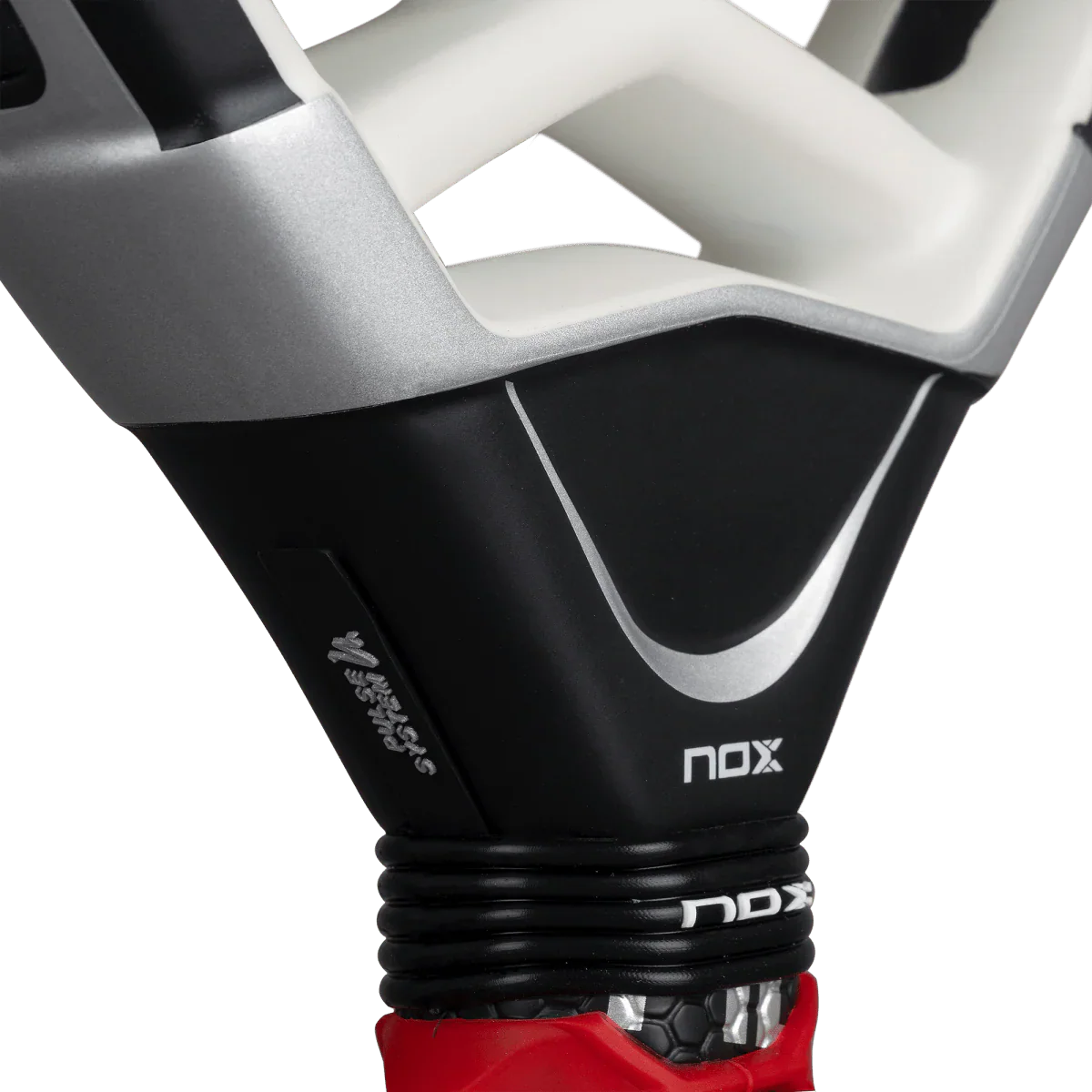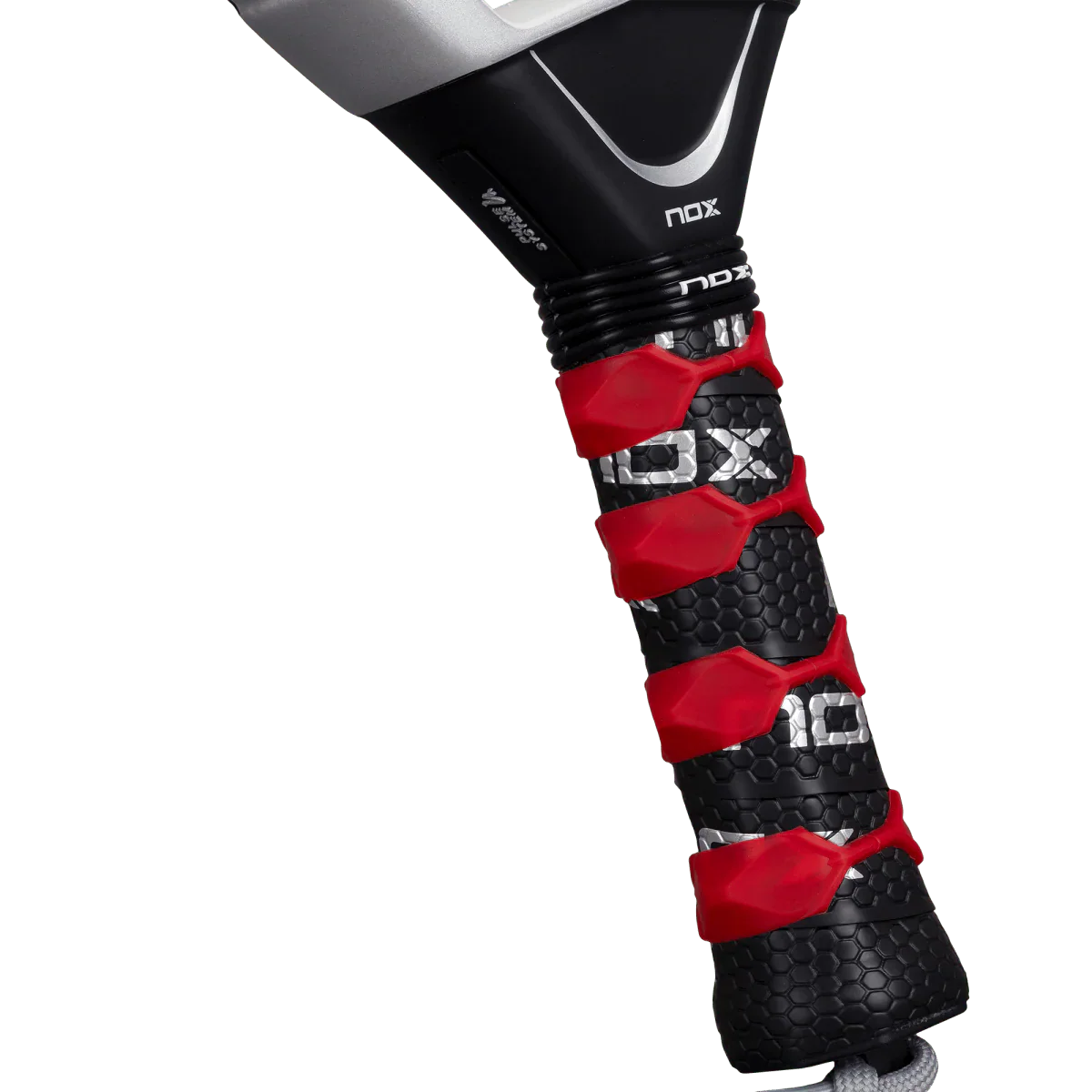 Tecnología patentada por NOX, certificada por Testea Pádel, que incrementa el agarre y reduce vibraciones en un 29 %, mejorando el control y la precisión.