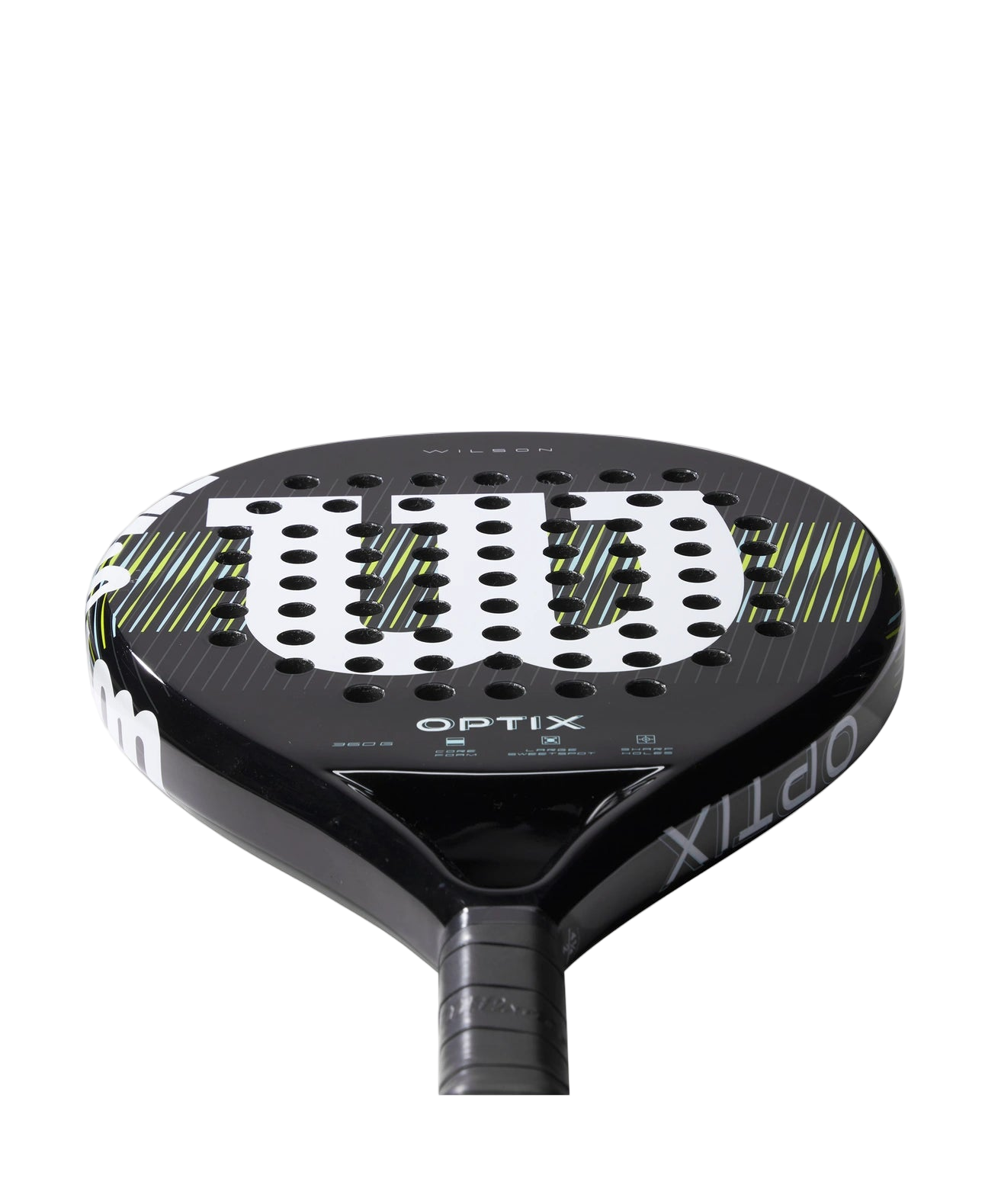 La WILSON OPTIX V1 es la pala ideal para jugadores principiantes que buscan una herramienta cómoda, controlable y fácil de manejar desde el primer partido. Su diseño con cabeza de gran tamaño y forma redonda ofrece una superficie de golpeo amplia que facilita la precisión y reduce los errores, mientras que su estructura de fibra de vidrio tejida y núcleo de espuma de baja densidad aportan una sensación suave y estable en cada impacto. Una pala ligera, confiable y perfecta para iniciarse en el pádel con estilo.